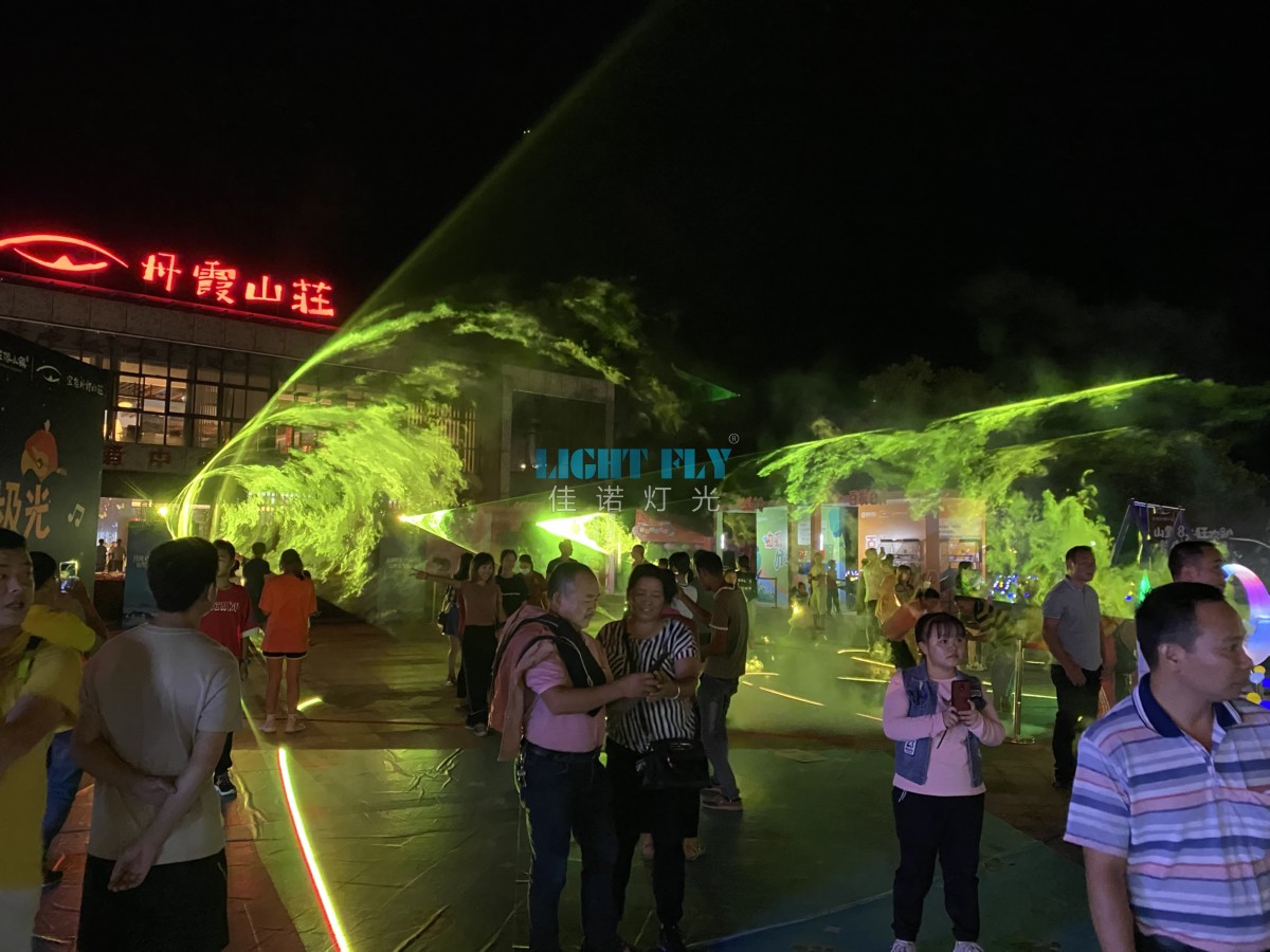 2020年国庆中秋长假八天,丹霞山庄为吸引游客,打造美食与灯光秀一体的活动,采用了3台佳诺灯光LIGHT FLY 30W全彩动画激光灯,配合进口穿山甲极光软件打造了美轮美奂的北极光激光秀,深受广大游客市民的喜爱,纷纷拍摄视频与合影,广州佳诺灯光设备有限公司是一家十二年从事智能化演艺灯光研发、生产、销售、服务于一体的国家高新技术企业。其自主品牌【佳诺灯光LIGHT FLY】产品涵盖专业舞台灯光、LED演艺照明,文旅亮化等领域,广泛应用于剧院、体育场馆、电视台及各种演出场所。