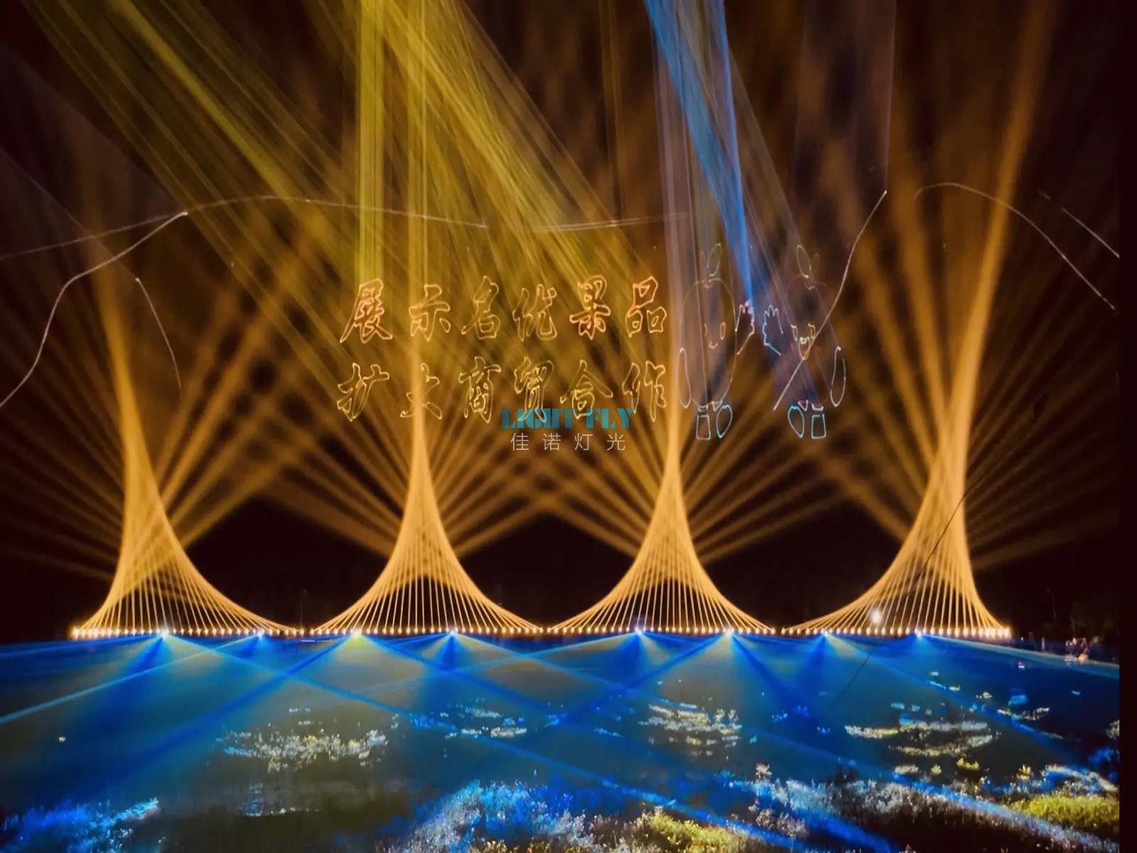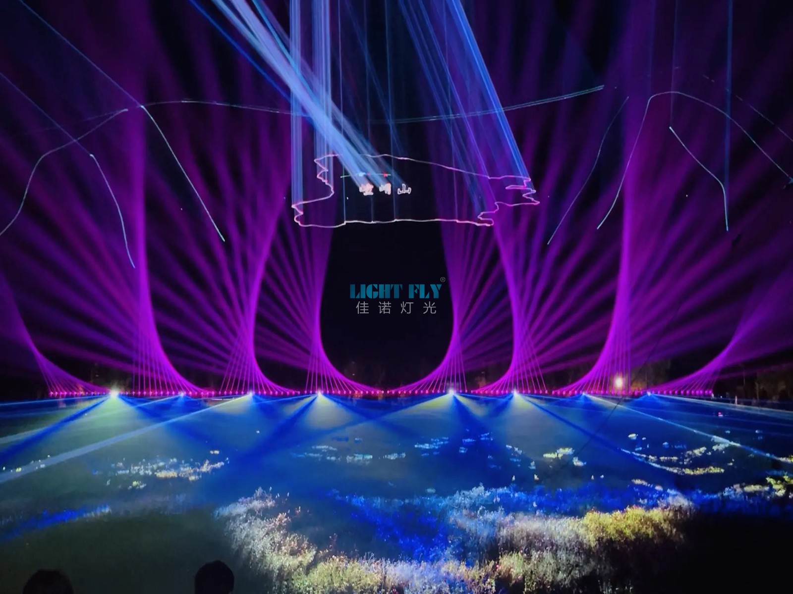 为了吸引全国各地的游客,打造了一场梦幻山体雕刻激光灯秀,佳诺灯光LIGHT FLY设计了8台100W全彩激光灯与180台480W防水光束灯放置于山体角落,实现了激光光束与光束灯七彩光束效果,山体对面设计了8台雕刻激光灯,通过进口BEYOND雕刻激光软件实现了任意动画与文字的相结,实现了精彩绝伦的动画激光效果也打造了特色文化与产品的宣传广告效果,得到了领导与游客们一直赞赏.